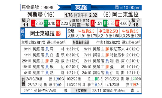 英超:新孖寶強「宮」 維拉「和」味濃_星島日報