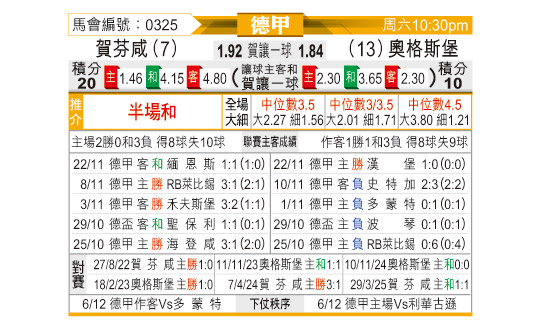 疯狂哥25173期足彩推荐:维拉主胜 斯图加特客胜